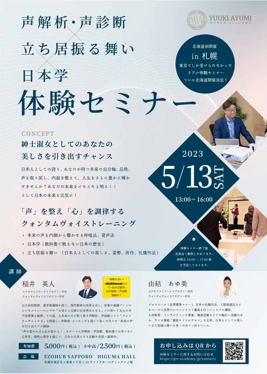 2023年5月13日北海道初開催の声解析・声診断×立ち居振る舞い×日本学体験セミナーが